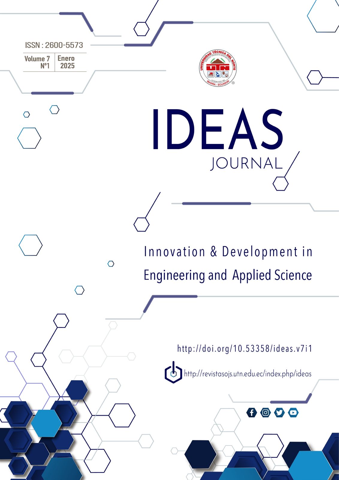 La Revista IDEAS de la Universidad Técnica del Norte presenta con orgullo su volumen 7, número 2, bajo el título “Ingeniería aplicada a problemas de la sociedad actual”, una edición que recoge investigaciones que vinculan el conocimiento técnico con soluciones relevantes para los desafíos contemporáneos. Este número da la bienvenida a sus lectores con aportes multidisciplinarios provenientes de diversas universidades ecuatorianas, reflejando el compromiso nacional con una ingeniería al servicio del bienestar colectivo.
