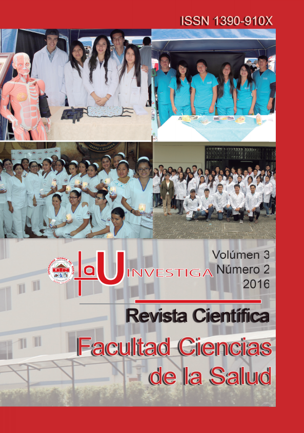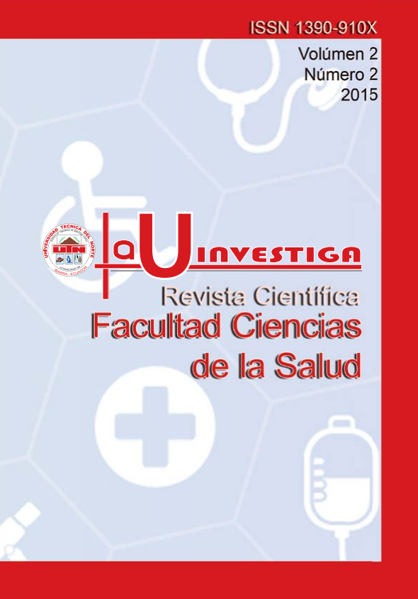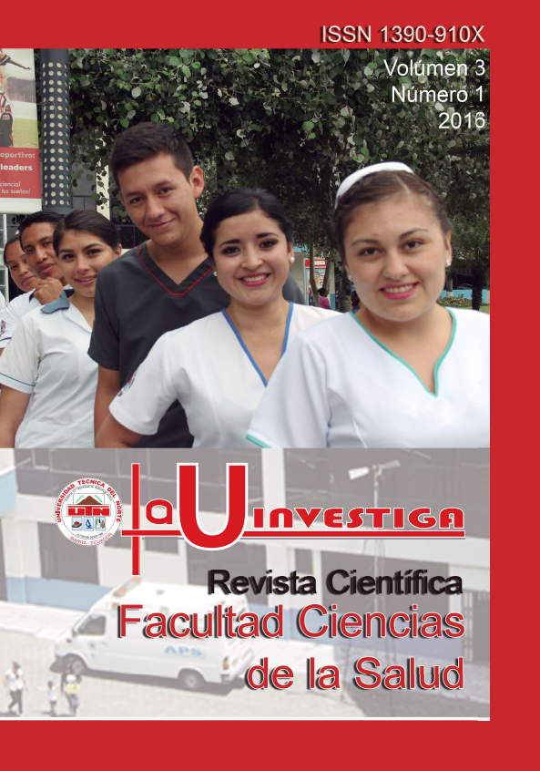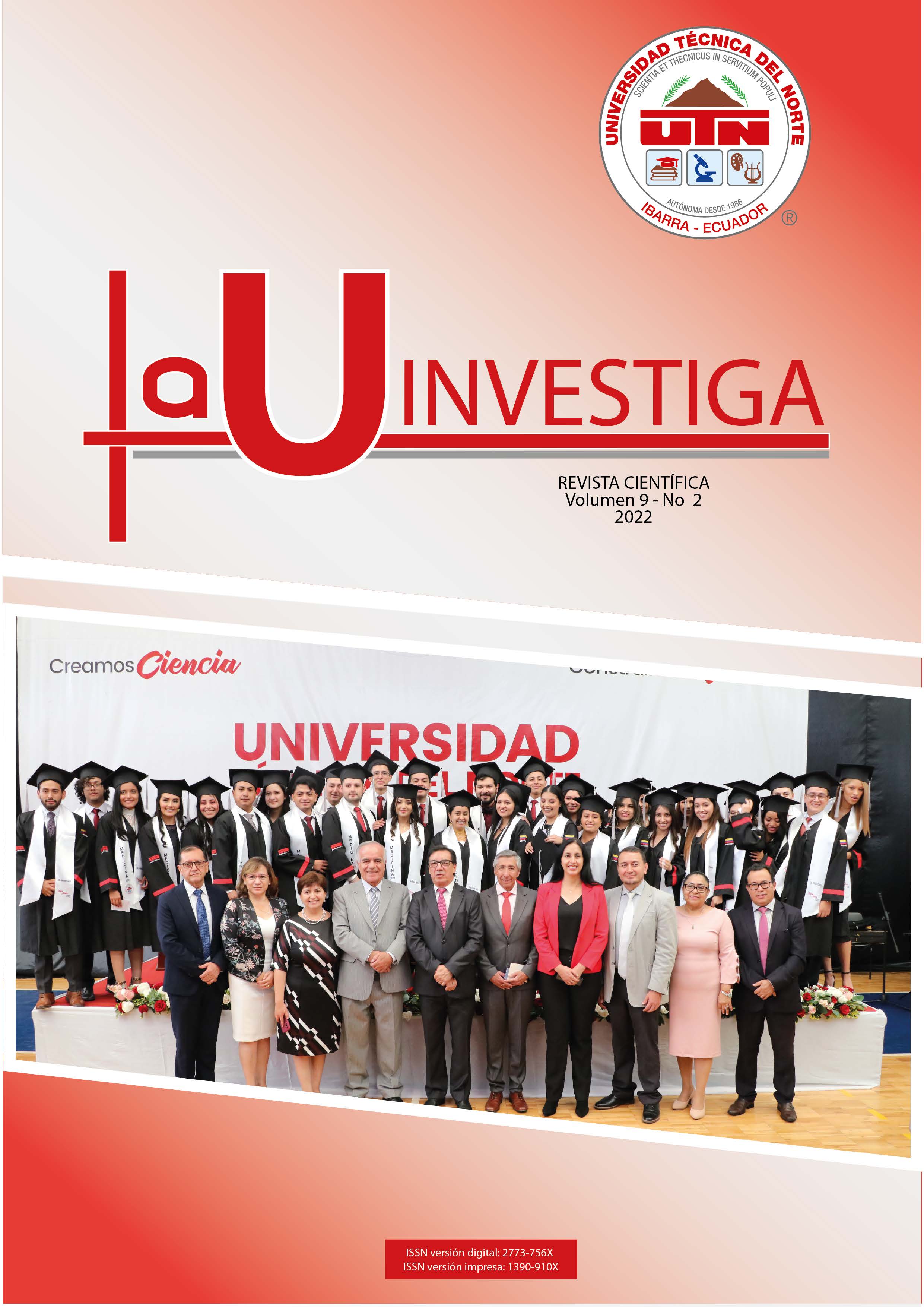 Vol. 3 Núm. 1 (2016)La Universidad Técnica del Norte y la Facultad Ciencias de la Salud presentan su Revista Científica La U Investiga, al momento con el Volumen 3 Número 1, cumpliendo los parámetros más rigurosos tanto académicos, científicos y bioéticos. La característica de la investigación en nuestra revista permite evidenciar la problemática actual, propia de nuestro país y región considerándose así en un elemento valioso que determina las particularidades de la población. El objetivo de la difusión de información científica producto de una investigación en territorio es procurar un seguimiento a los problemas planteados de tal manera que se brinde una solución que garantice la transformación de la sociedad.