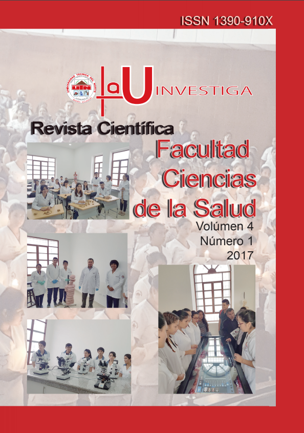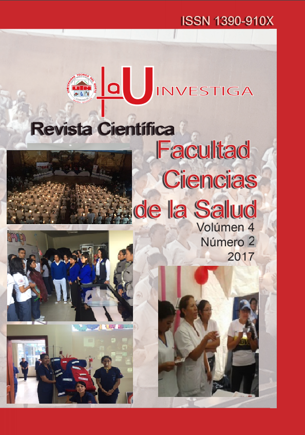 Vol. 4 Núm. 2 (2017)La investigación y su posterior publicación han mejorado en el Ecuador de manera sustancial en los últimos dos años. Para la Facultad Ciencias de la Salud de la UTN; la investigación continúa siendo un objetivo prioritario tanto para docentes y en este último tiempo para estudiantes dentro de la formación académica como la denominada investigación formativa.